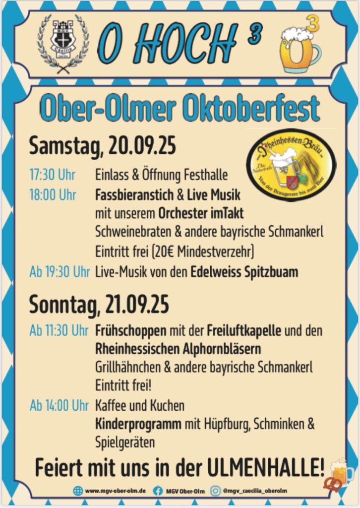 Seien Sie dabei beim Ober-Olmer Oktoberfest – dem „O3“ des MGV Cäcilia